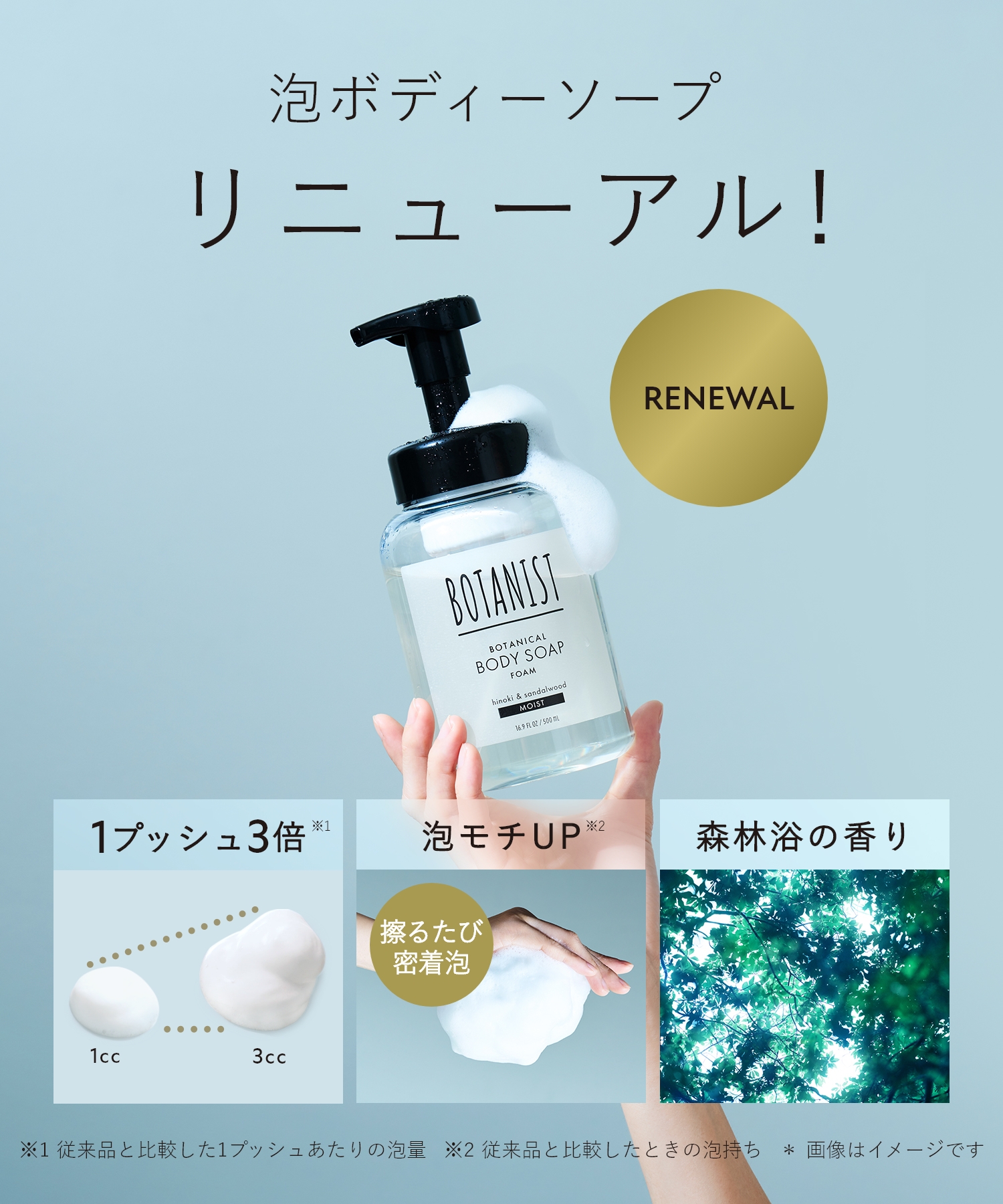 使用方法 | つめかえ方 1.ボトルとポンプを洗浄ししっかり乾燥させます。※1 2.上部の□マークの部分を持ち矢印の方向にそって切り取ります。※2 3.ボトルにそそぎ口を差し込みゆっくりそそぎ入れます。 本品はつめかえ用です。必ず[ボタニスト ボタニカルボディーソープフォーム モイスト]のボトルにつめかえてください。 ※1 乾燥が不十分な場合、雑菌が繁殖する恐れがあります。 ※2 胴体部分を持つと、中身が飛び出す恐れがあります。 使用量は2~5プッシュが目安です。 肌をぬらしてから、適量をつけて、全身を洗ってください。洗浄後は十分洗い流してください。 ※タオル、泡立てネットなどをご使用の場合は、ぬらしてから適量をとってください。 ※直接水のかかる状態や容器を傾けた状態でポンプを押さないでください。 |