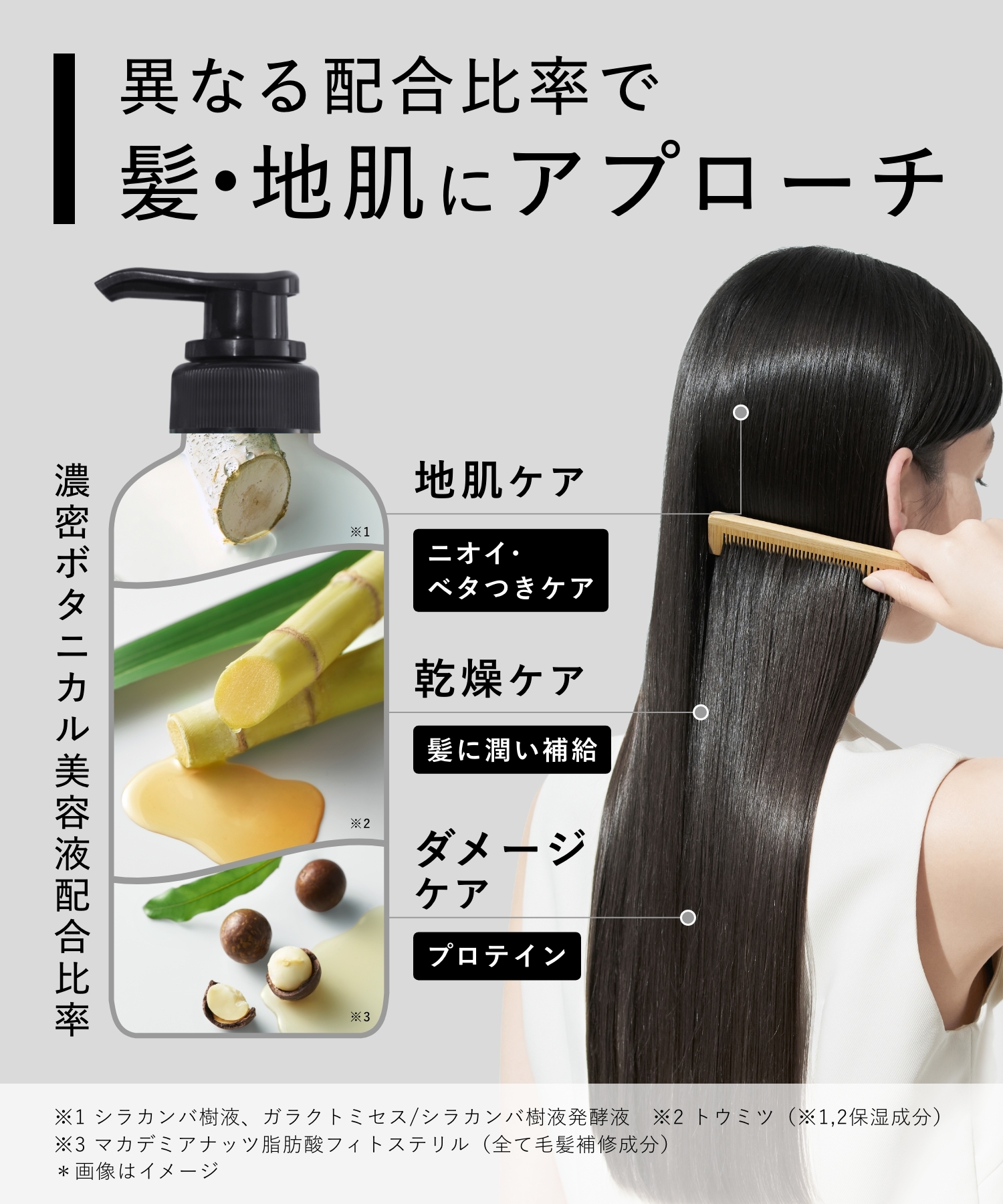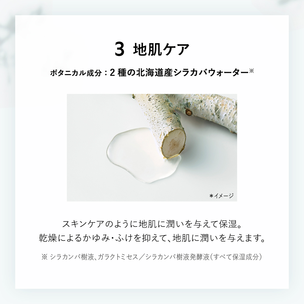 | 成分 | 水、ココイルメチルタウリンNa、コカミドプロピルベタイン、ラウレス4カルボン酸Na、ラウリルベタイン、シラカンバ樹液、ガラクトミセス/シラカンバ樹液発酵液、マカデミアナッツ脂肪酸フィトステリル、加水分解野菜タンパク、トウミツ、スフィンゴ糖脂質、グリチルリチン酸2K、ブドウ種子エキス、テルミナリアフェルジナンジアナ果実エキス、ホホバ種子油、リンゴ果実エキス、酒粕エキス、加水分解コラーゲン、加水分解ヒアルロン酸、セラミドNG、加水分解ケラチン(羊毛)、アルギニン、リンゴ酸、PEG30フィトステロール、水添レシチン、フィトステロールズ、水添リゾレシチン、グリセリン、BG、DPG、ポリクオタニウム10、ラウラミドプロピルベタイン、ラウリルヒドロキシスルタイン、ラウラミドプロピルヒドロキシスルタイン、デシルグルコシド、ジステアリン酸PEG150、セテアレス60ミリスチルグリコール、PEG30水添ヒマシ油、PPG4セテス20、PEG40水添ヒマシ油、コカミドMEA、PEG400、ペンチレングリコール、ヘキシレングリコール、ベヘントリモニウムクロリド、ジステアリルジモニウムクロリド、EDTA2Na、エタノール、塩化Na、トコフェロール、フェノキシエタノール、安息香酸Na、香料 |