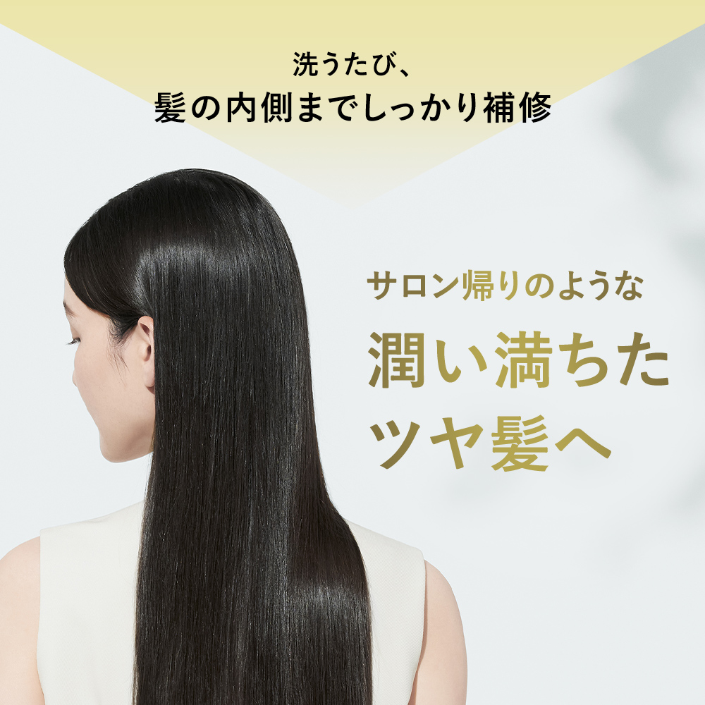 | 成分 | 水、セテアリルアルコール、グリセリン、ジメチコン、ベヘントリモニウムクロリド、ステアリン酸グリセリル、スクワラン、ジアルキル(C1218)ジモニウムクロリド、アモジメチコン、マカデミアナッツ脂肪酸フィトステリル、加水分解野菜タンパク、トウミツ、スフィンゴ糖脂質、シラカンバ樹液、ガラクトミセス/シラカンバ樹液発酵液、グリチルリチン酸2K、ブドウ種子エキス、テルミナリアフェルジナンジアナ果実エキス、ツバキ種子油、シャクヤク根エキス、酒粕エキス、ジラウロイルグルタミン酸リシンNa、メドウフォームδラクトン、ゼイン、加水分解コメタンパク、ユズ果実エキス、ヒマワリ種子エキス、アルガニアスピノサ核油、ホホバ種子油、ヒマワリ種子油、サルビアヒスパニカ種子油、アルギニン、ベタイン、ラウロイルグルタミン酸ジ(フィトステリル/オクチルドデシル)、トリイソステアリン、ジリノール酸ジイソプロピル、リンゴ酸、BG、DPG、PEG40水添ヒマシ油、水添リゾレシチン、水添レシチン、ステアラミドプロピルジメチルアミン、ジステアリルジモニウムクロリド、アミノプロピルジメチコン、フィトステロールズ、ペンチレングリコール、ヘキシレングリコール、EDTA2Na、エタノール、イソプロパノール、トコフェロール、安息香酸Na、香料 |