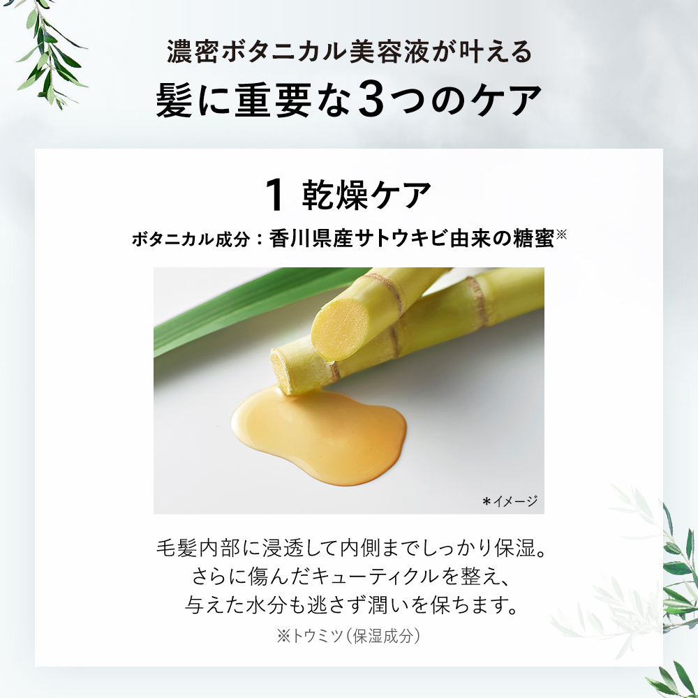 | 成分 | 水、セタノール、ステアラミドプロピルジメチルアミン、ソルビトール、グリセリン、シラカンバ樹液、ガラクトミセス/シラカンバ樹液発酵液、トウミツ、スフィンゴ糖脂質、マカデミアナッツ脂肪酸フィトステリル、加水分解野菜タンパク、グリチルリチン酸2K、ブドウ種子エキス、テルミナリアフェルジナンジアナ果実エキス、ローズマリー葉エキス、セージ葉エキス、酒粕エキス、シア脂、ヒマワリ種子油、マカデミア種子油、シャクヤク根エキス、レモン果実エキス、セイヨウアカマツ球果エキス、ホップエキス、スギナエキス、アルギニン、加水分解ケラチン(羊毛)、PEG-30フィトステロール、乳酸、BG、PPG-3カプリリルエーテル、オレイルアルコール、ステアリン酸グリセリル、PEG-40水添ヒマシ油、水添レシチン、水添リゾレシチン、ジステアリルジモニウムクロリド、ベヘントリモニウムクロリド、フィトステロールズ、ペンチレングリコール、ヘキシレングリコール、EDTA-2Na、エタノール、トコフェロール、フェノキシエタノール、安息香酸Na、香料 |