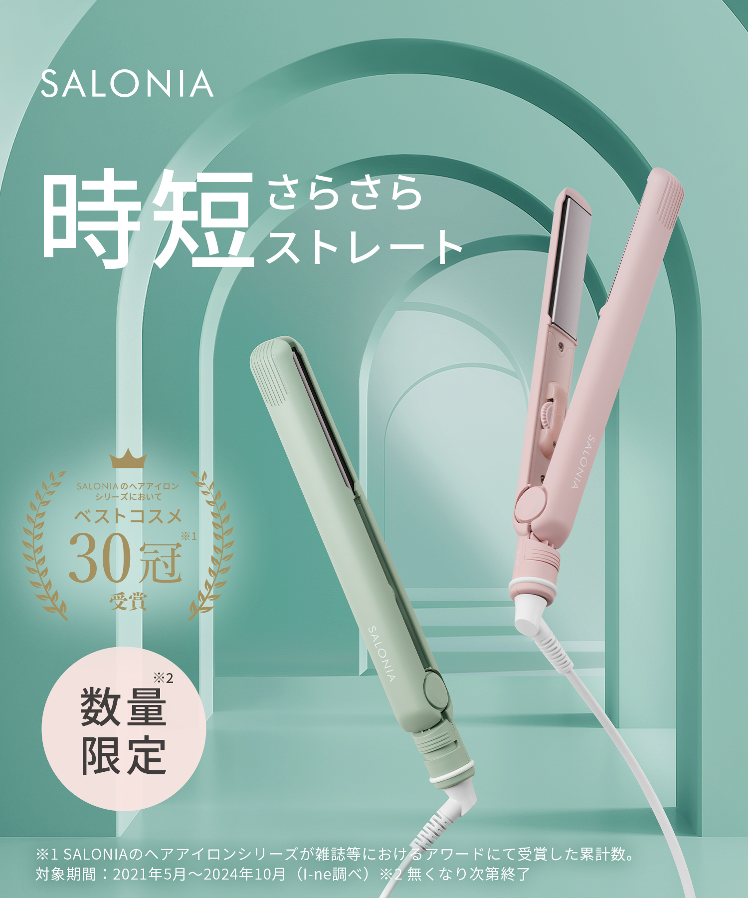| 商品名 | サロニア ストレートへアアイロン フロー ミスティグリーン、ミスティピンク 24mm |