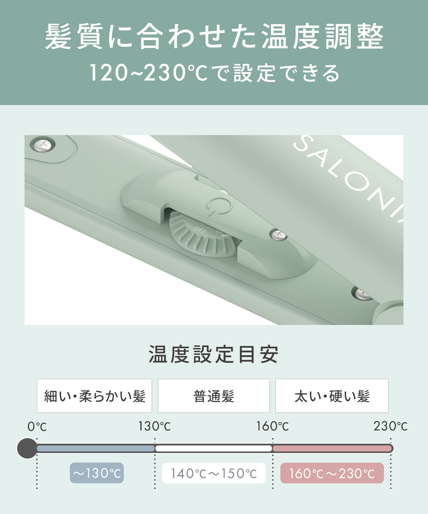 | 機能 | 最高設定温度230℃ オートパワーOFF 360℃回転コード 海外使用可能 |