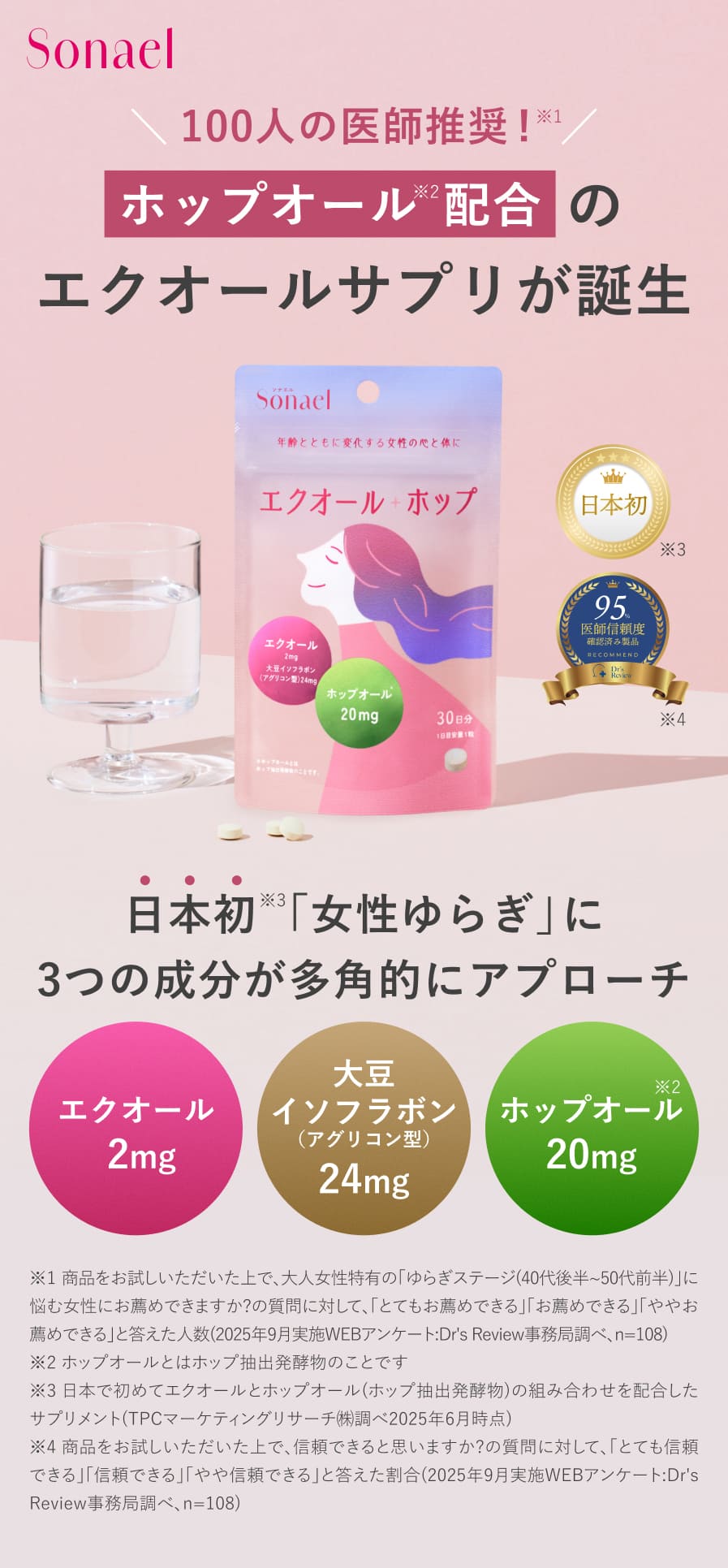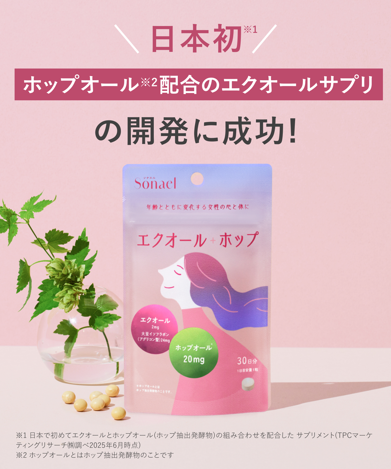 【定期】【送料無料】【ゆうパケット対象商品】Sonael(ソナエル)エクオール+ホップ30日分 定期コース