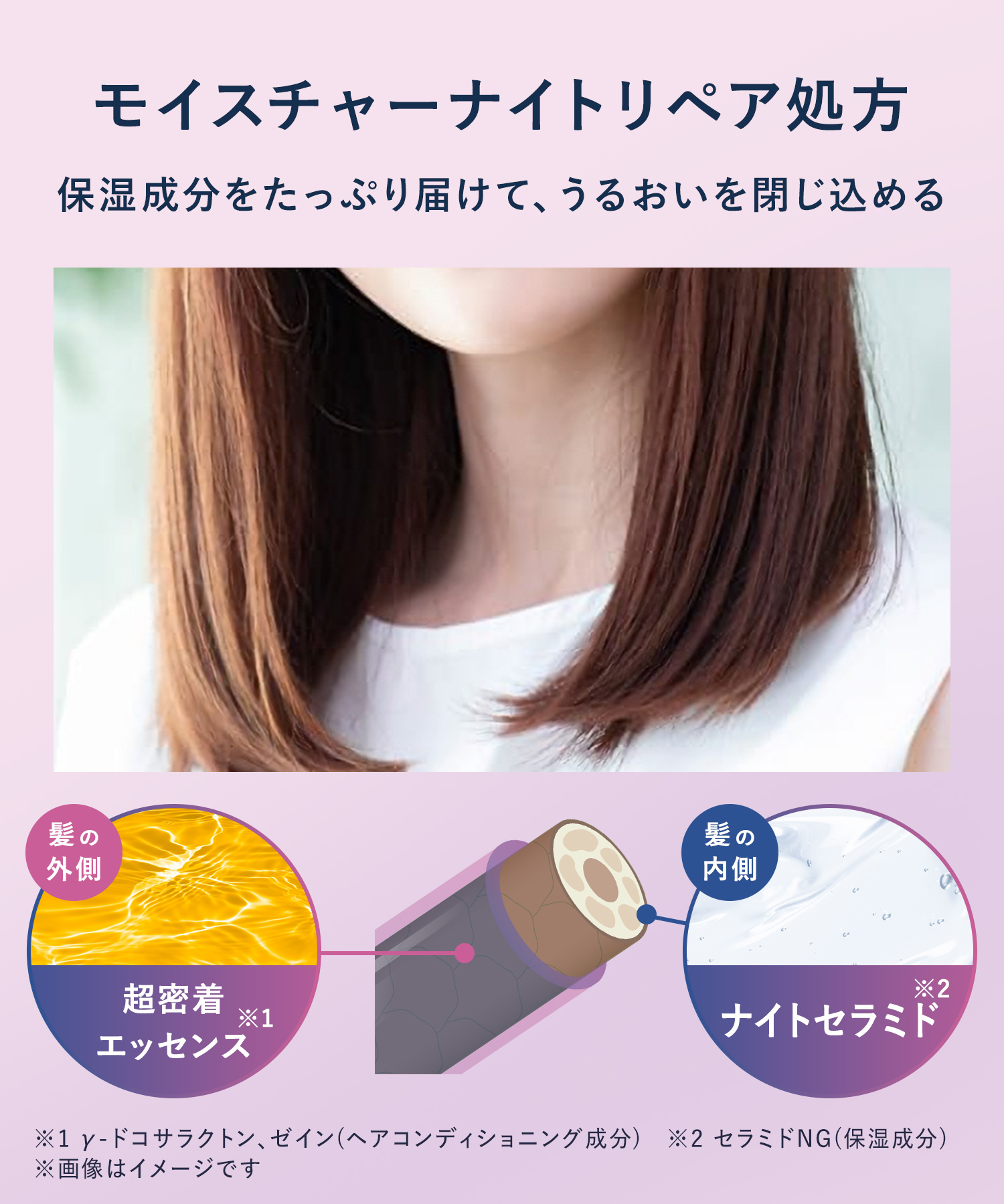 | 使用方法 | タオルドライした髪や乾いた髪に、適量を手のひらでよく伸ばし、毛先を中心に髪全体になじませてください。(洗い流す必要はあり ません。) |