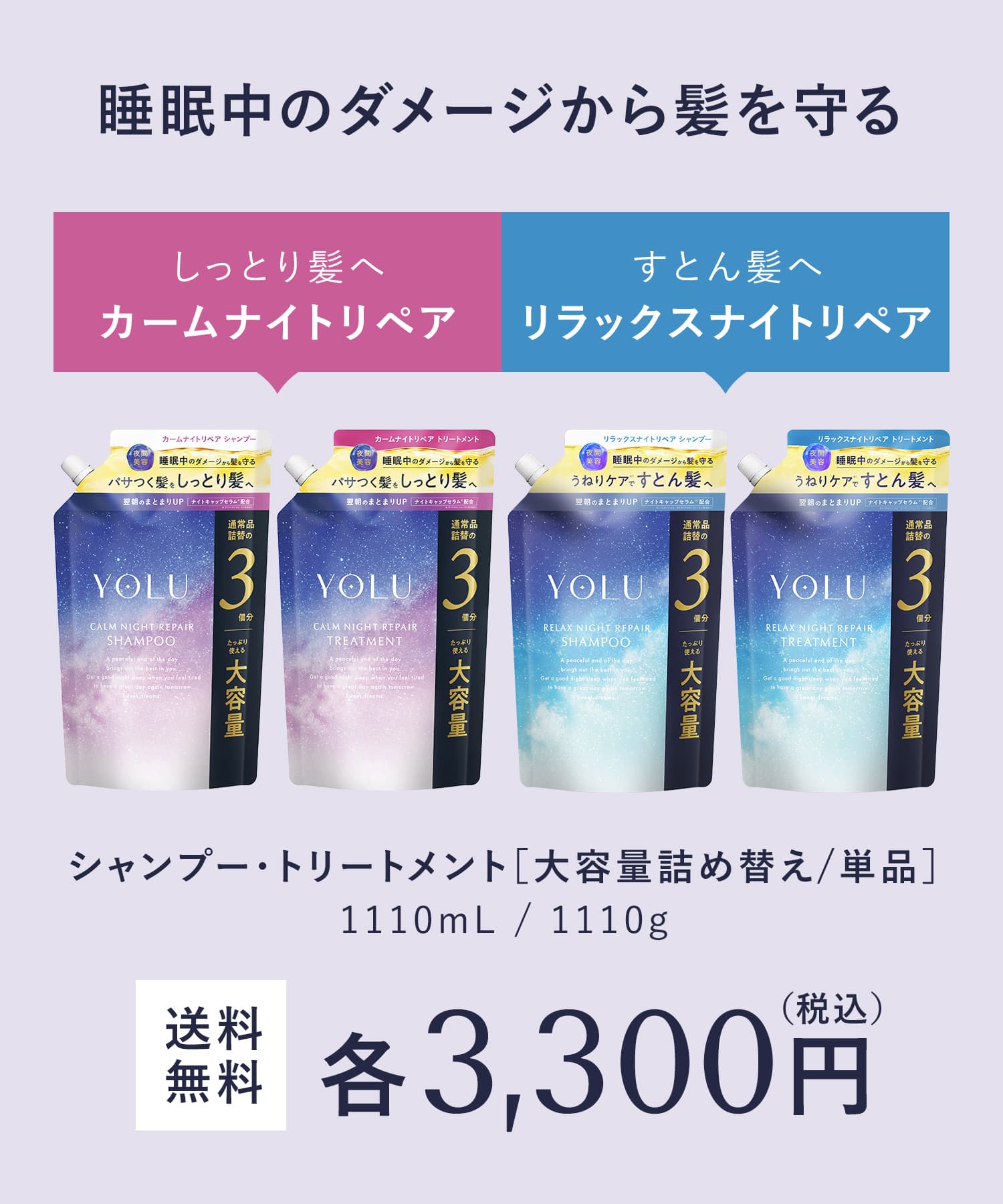 【送料無料】YOLU(ヨル)ナイトリペアシャンプー・トリートメント【3倍大容量詰替】
