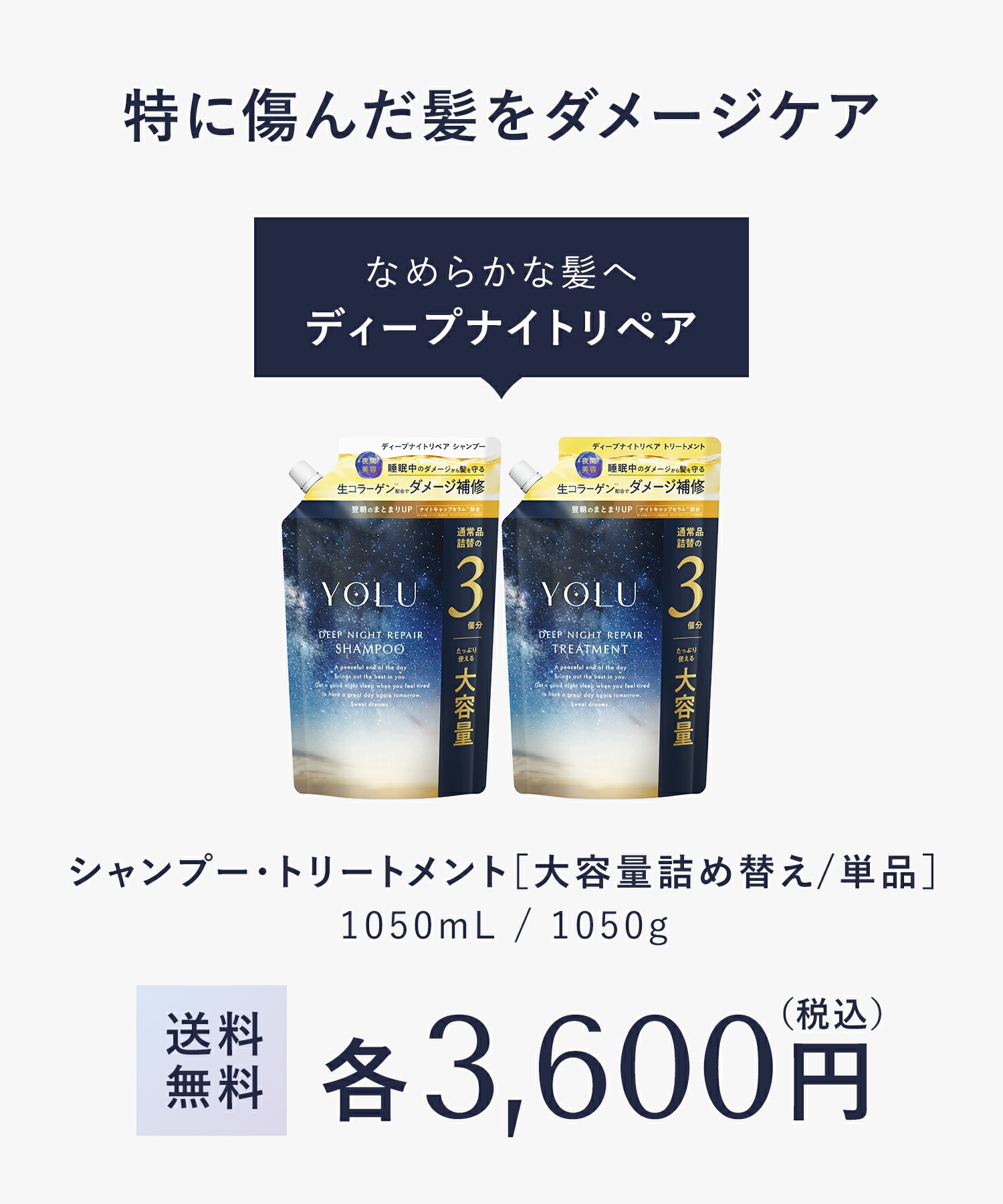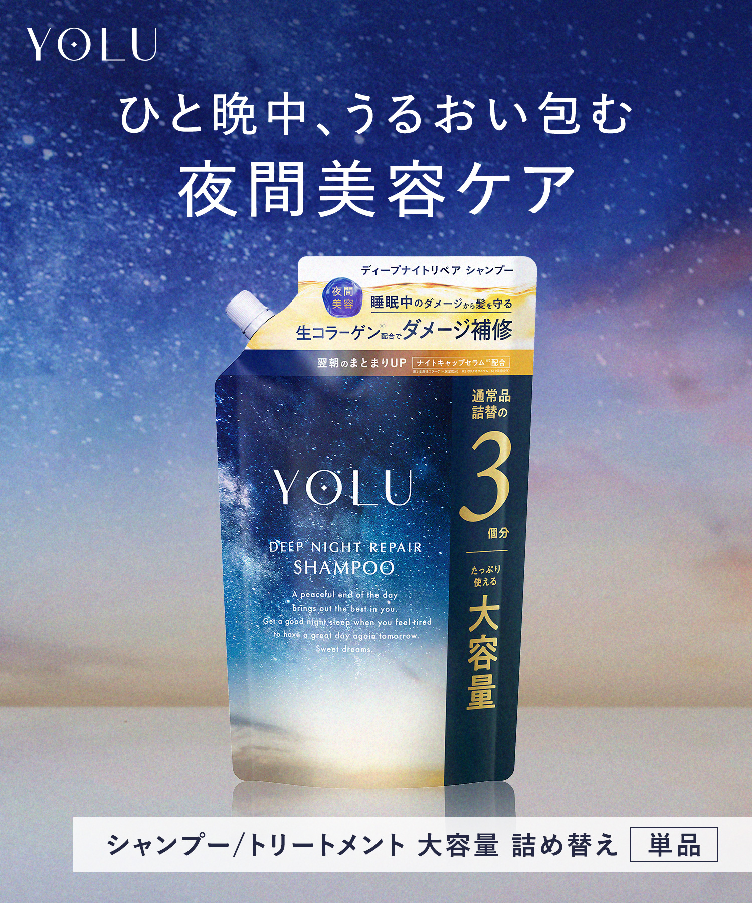 【送料無料】YOLU(ヨル)ディープナイトリペアシャンプー・トリートメント【3倍大容量詰替】