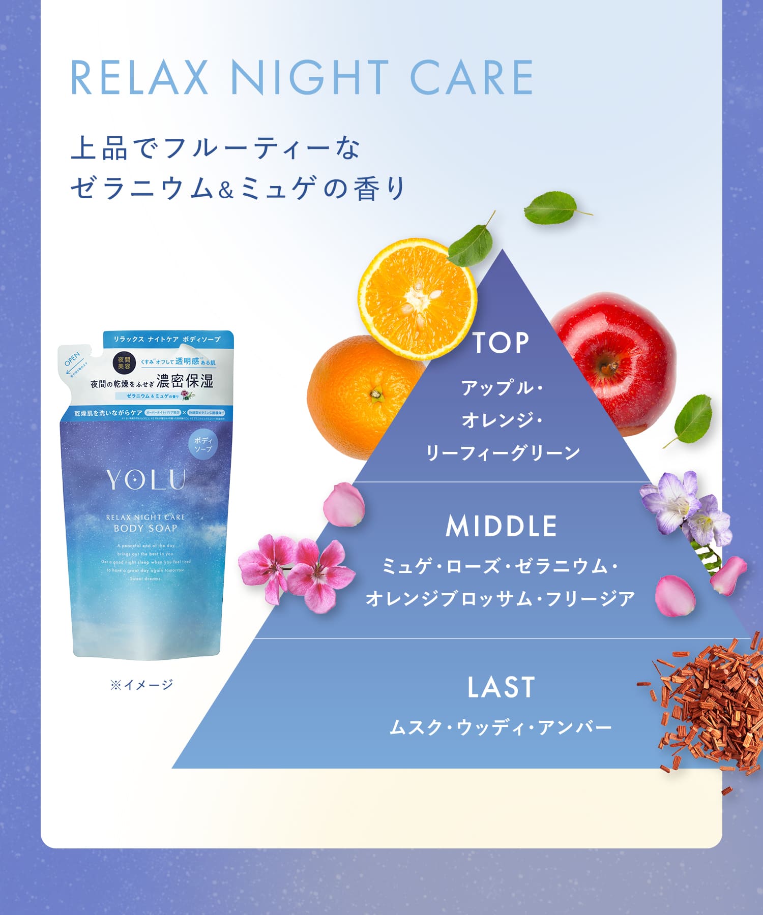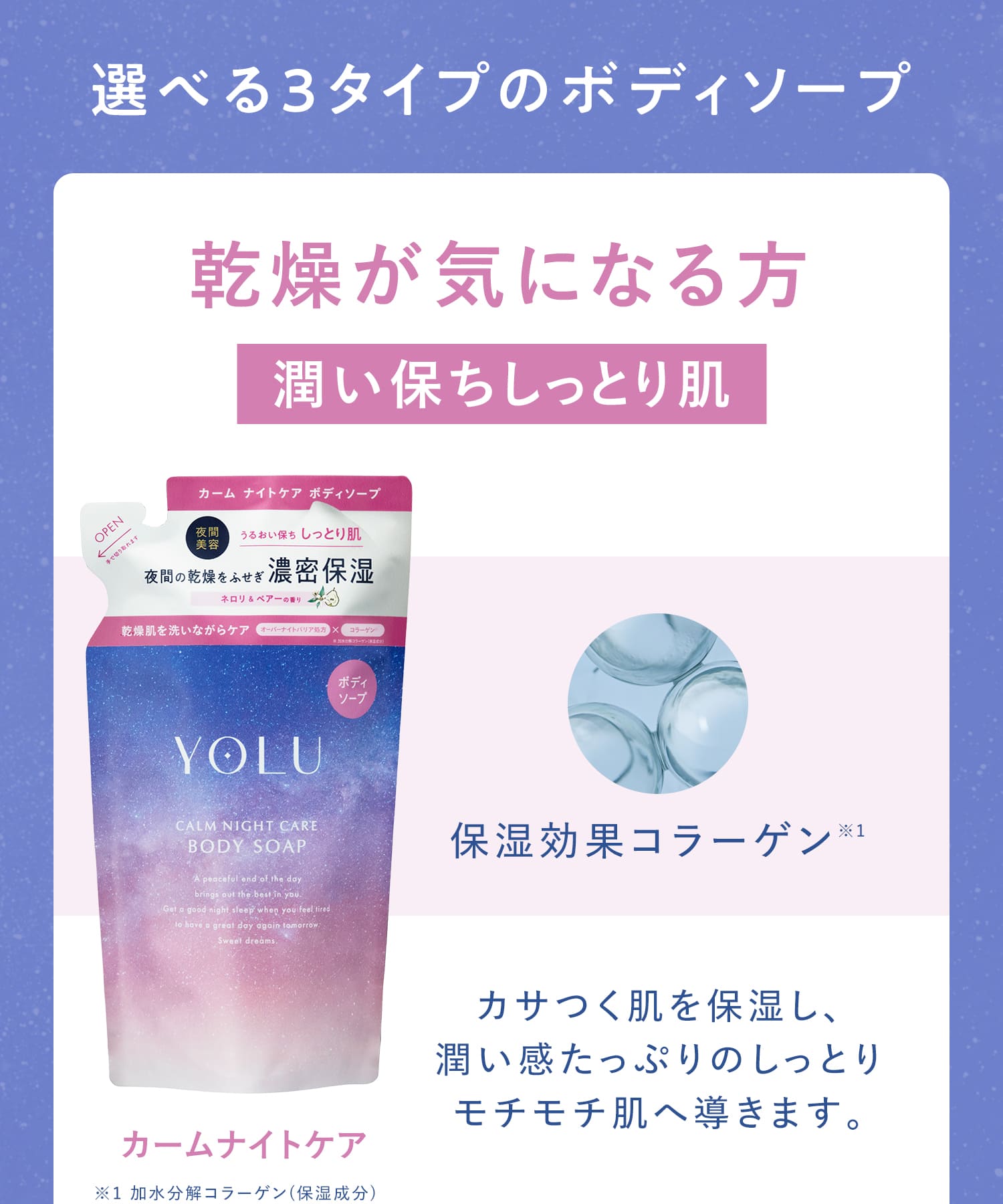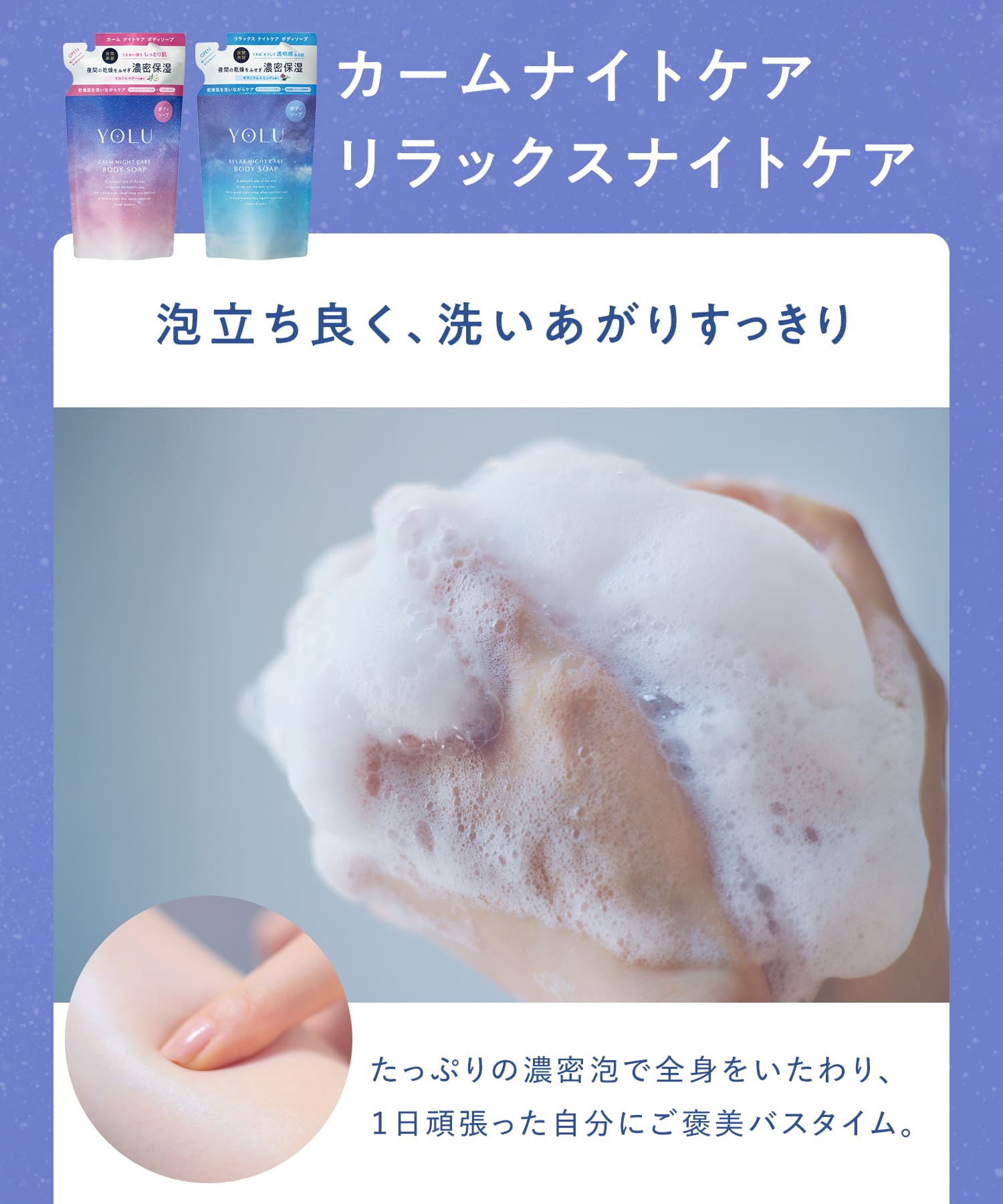 ヨル カームナイトケアボディソープ(詰替) ヨル リラックスナイトケアボディソープ(詰替) ヨル ディープナイトケアボディソープ(詰替) |