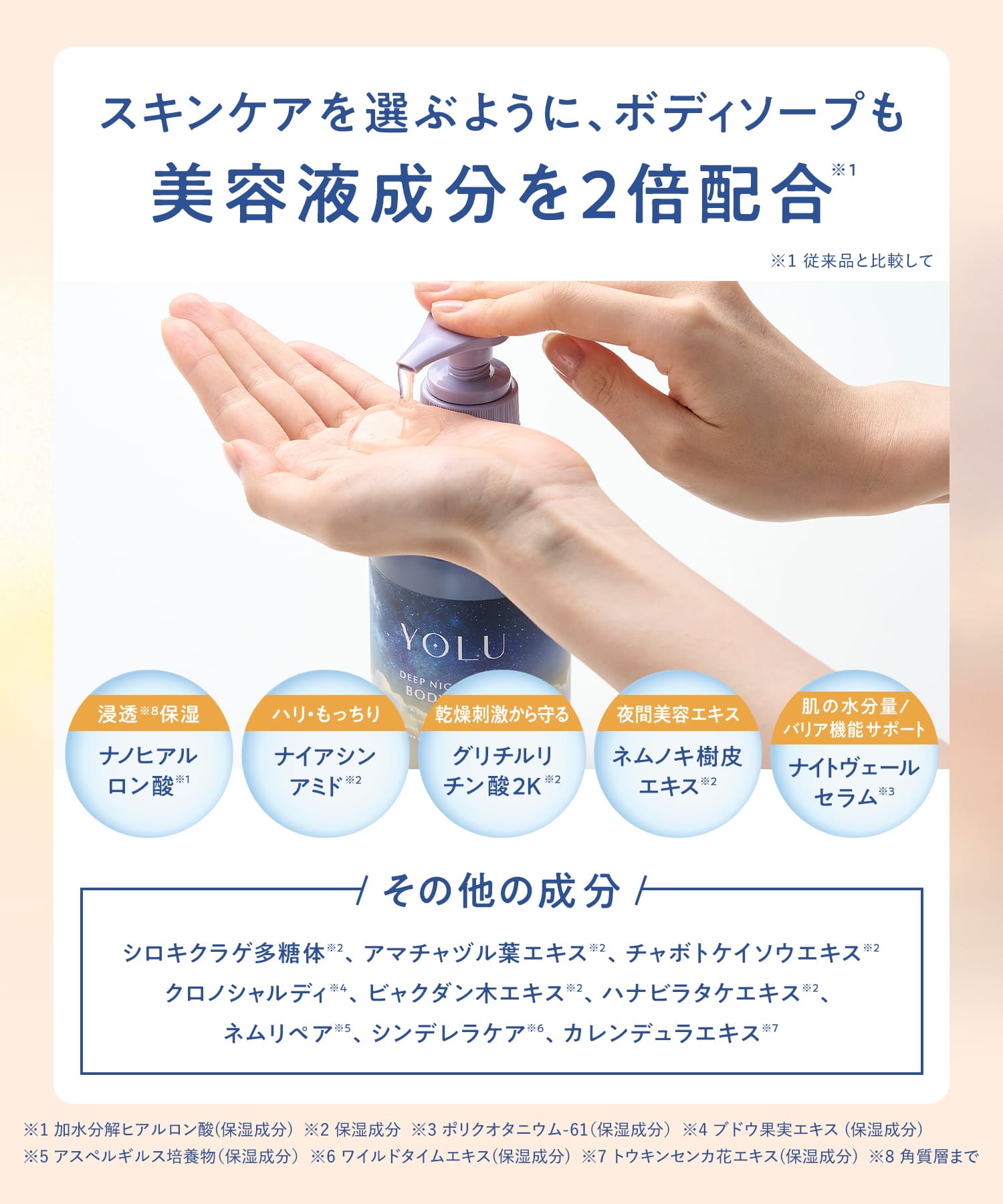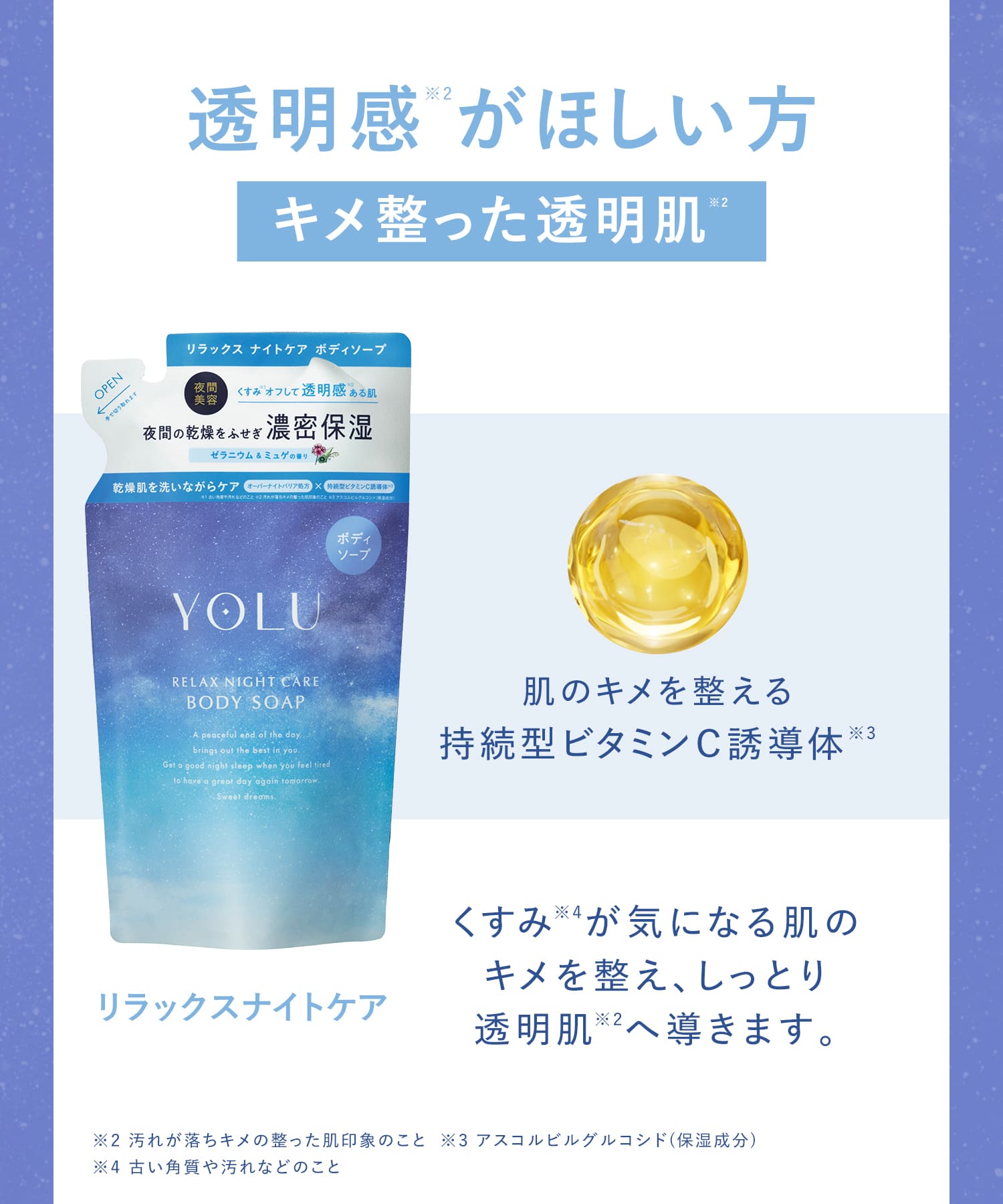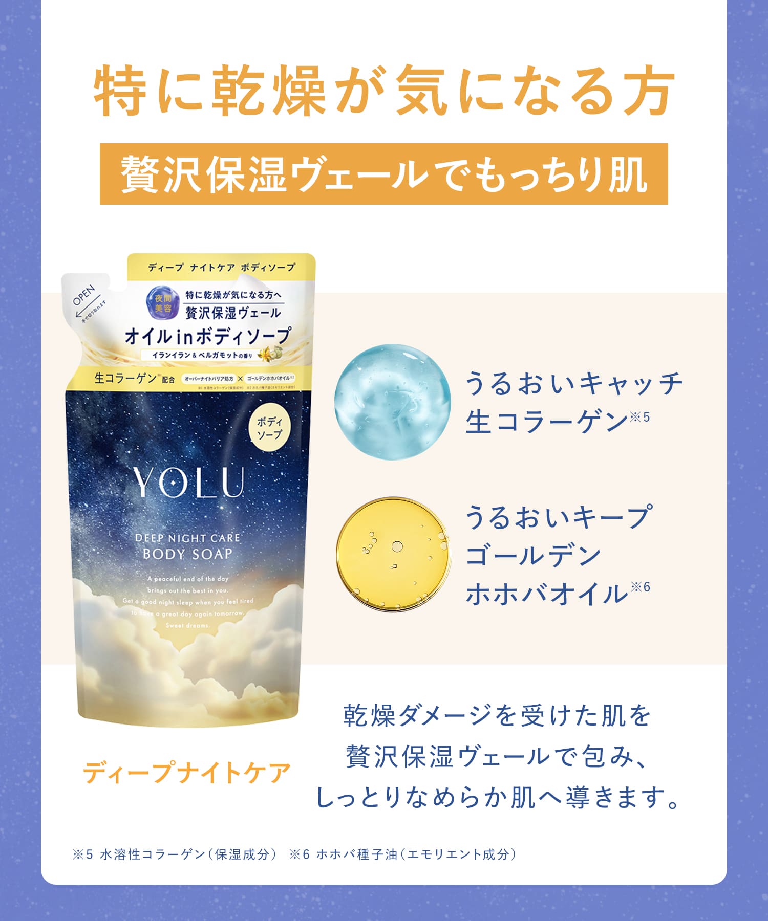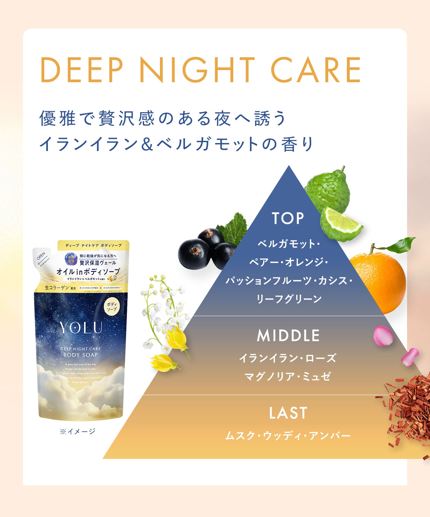 ヨル カームナイトケアボディソープ(詰替) ヨル リラックスナイトケアボディソープ(詰替) ヨル ディープナイトケアボディソープ(詰替) |