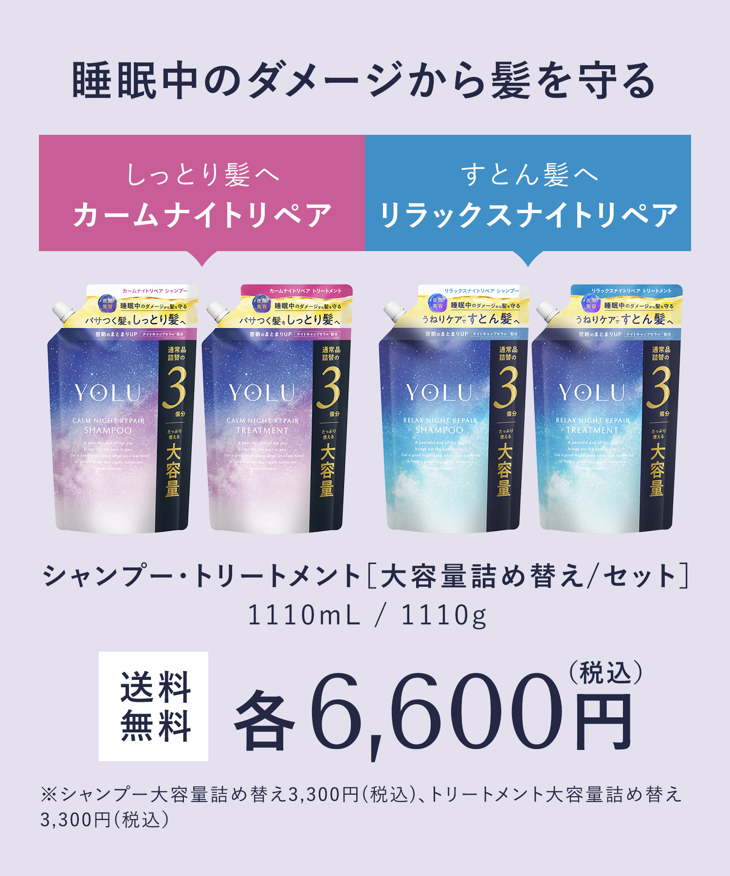 【送料無料】YOLU(ヨル)ナイトリペアシャンプー&トリートメント3倍大容量詰替セット