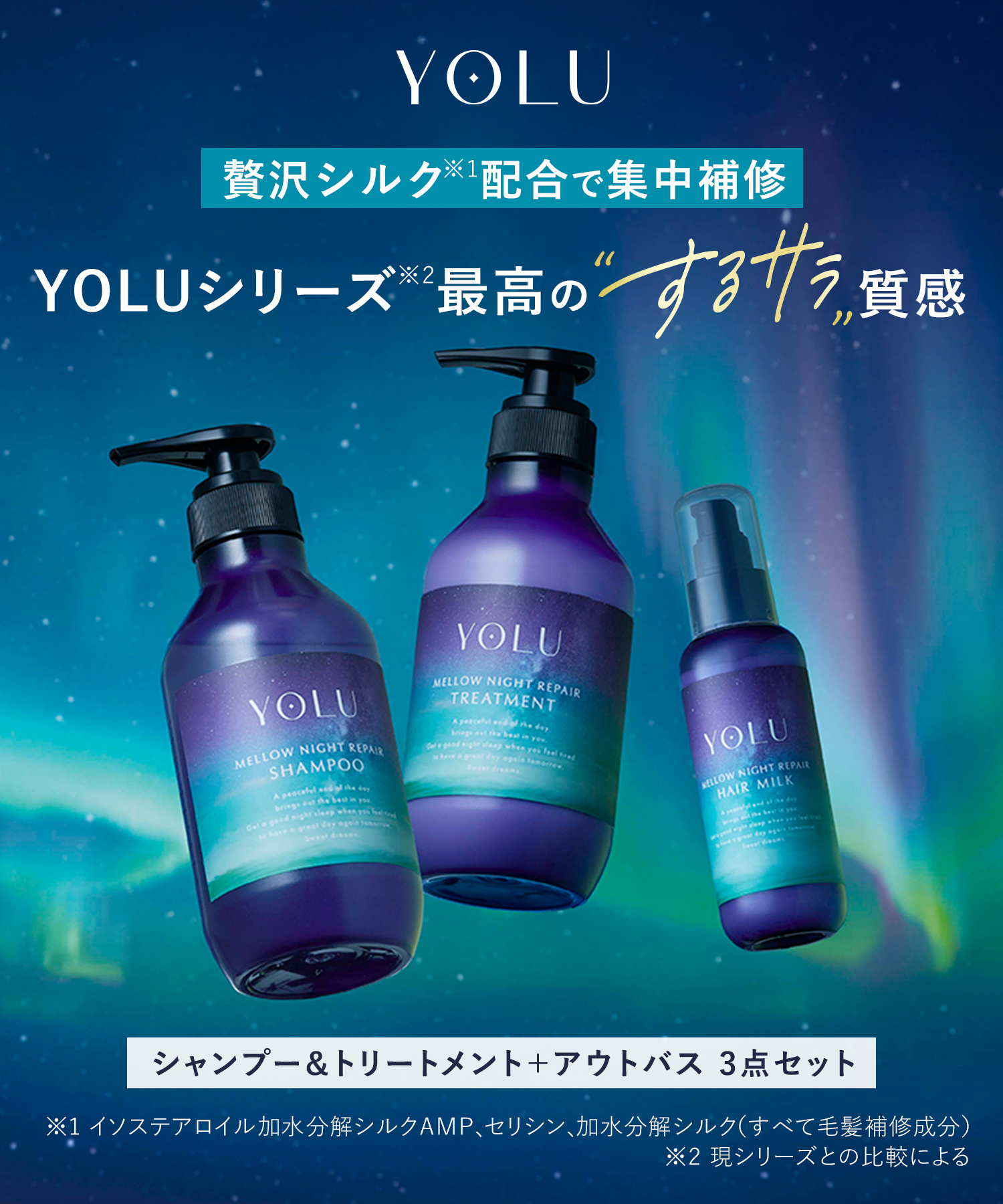 【送料無料】YOLU(ヨル)メロウナイトリペアシャンプー・トリートメント・ヘアミルクセット